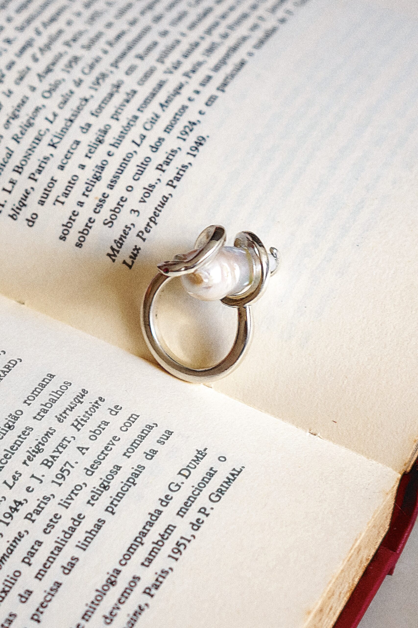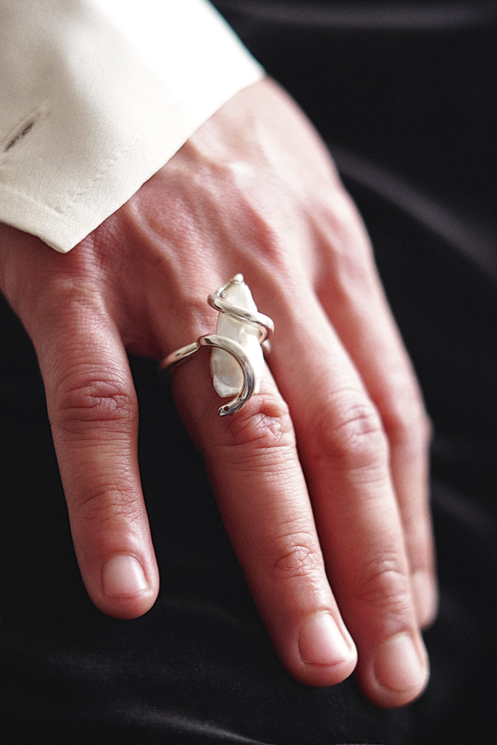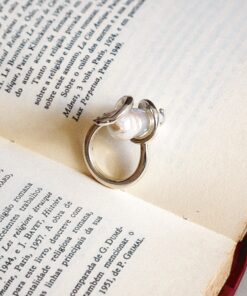 O anel Natrix une a força da serpente à delicadeza da pérola barroca. Em prata 950, a serpente envolve e protege a gema nascida do mar, transformando a joia em símbolo de guardiã do mistério e da eternidade.