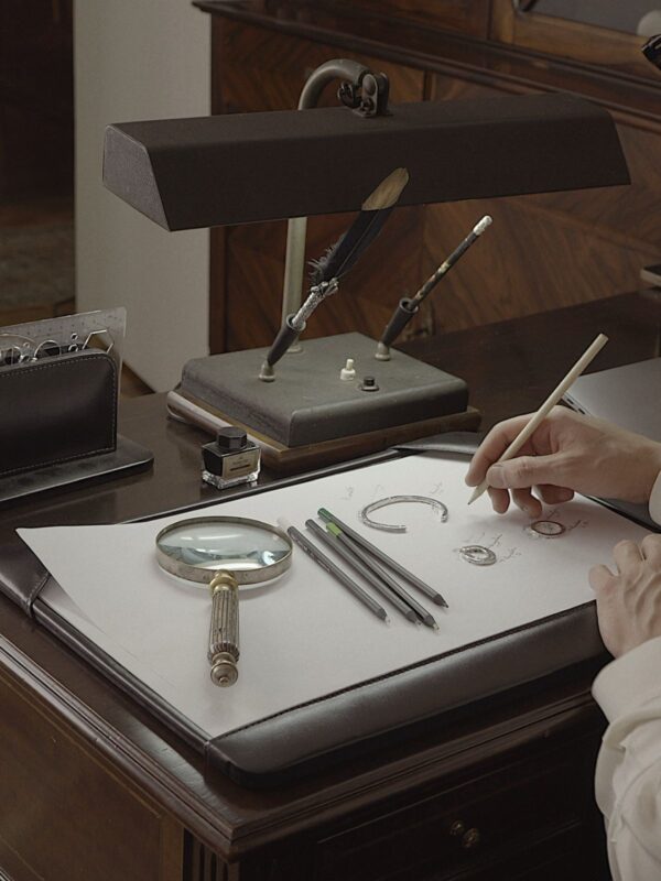 Todas as peças passam por um processo de documentação. São desenhadas, nomeadas e registradas com fichas técnicas, como parte do compromisso com a autenticidade e com o caráter autoral do trabalho. Isso garante não apenas controle de criação, mas também um arquivo de memória da marca.